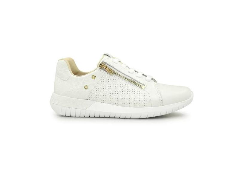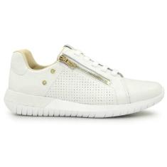 Tênis Usaflex Casual em Couro com Zíper e Elástico, Branco, 36