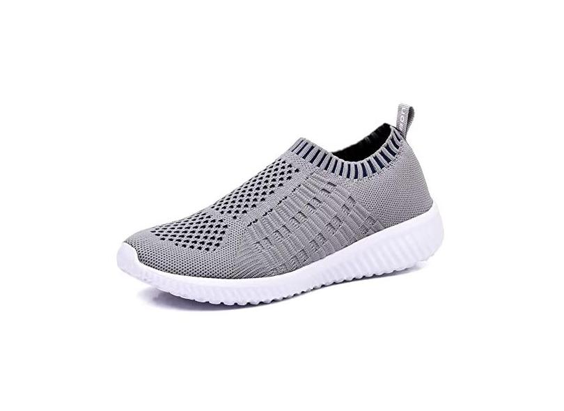 TIOSEBON Tênis de caminhada atlético feminino, sem cadarço, casual, de malha, confortável, para treino, Cinza claro, 35