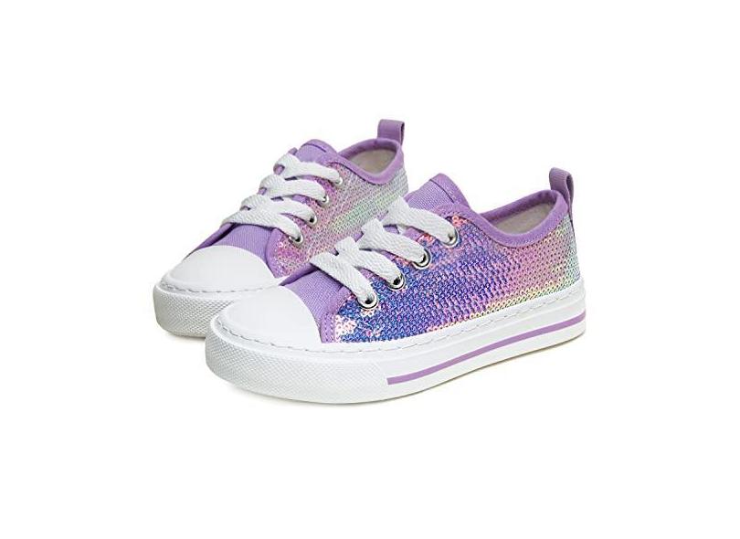 Toandon Meninas Crianças Tênis Glitter Lantejoulas Sapatos de Lona Criança Criança Brilho Brilho Baixo Superior Rendas Até Antiderrapante Leve Caminhada Ao Ar Livre Tamanho Roxo 9