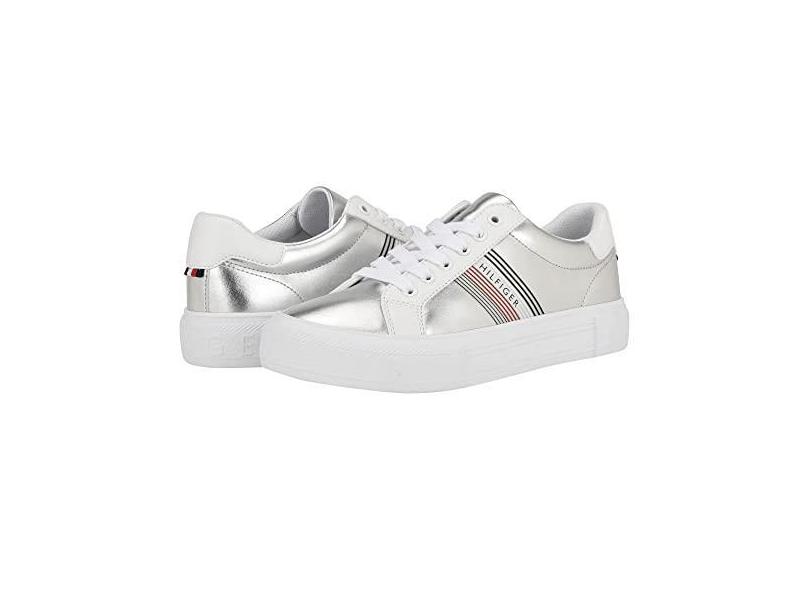 O menor preço encontrado no Brasil para Tommy Hilfiger Tênis feminino Andrei, Listras prateadas multi, 36 atualmente é R$ 377,10.