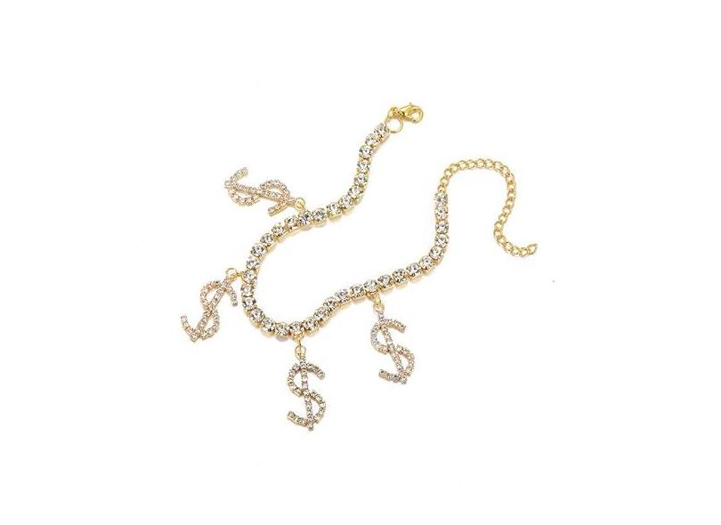 Tornozeleira feminina de strass com símbolo de dólar americano, pingente de símbolo de dinheiro cintilante, tornozeleira de tênis de salto alto ajustável, joia corporal brilhante para festa, boate,
