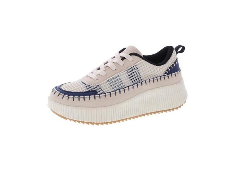 TruFox Tênis feminino com cadarço e plataforma, confortável, moderno, cano baixo, grosso, tênis de caminhada, Preto off-white azul-marinho, 35
