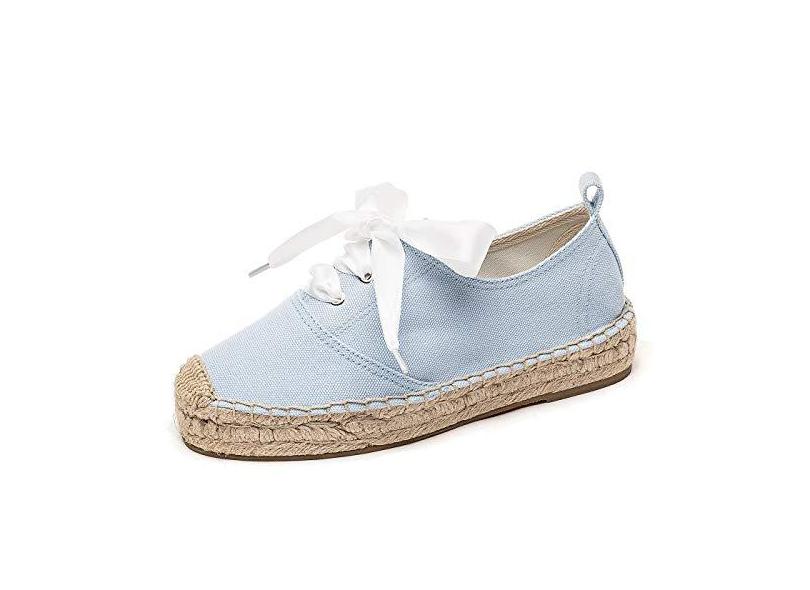 U-lite Tênis feminino de lona branco plataforma alpargata, clássico, moderno, confortável, casual, cadarço e cano baixo, Azul-celeste, 37