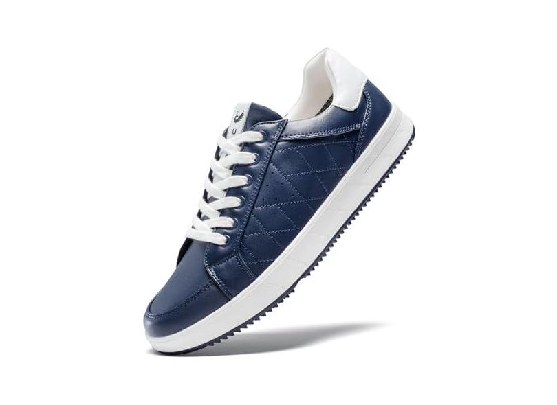 U.Ofeiy Tênis de golfe masculino profissional de couro sem pontas, cano baixo, leve, confortável, cadarço e caminhada masculino, Azul, 42