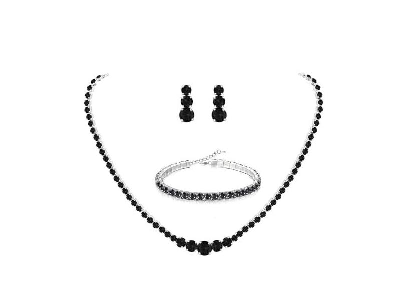 UDYLGOON Conjunto de joias de cristal para noivas, brincos de tênis, colar e pulseira para mulheres, noiva, noiva, formatura, casamento, acessórios, Ouro rosa Prata, Cristal Strass