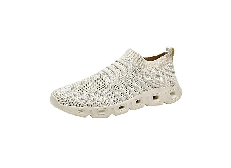 UIFLQXX 2022 novo tênis masculino oco voando tecido leve respirável confortável descompressão moda bonito esportes tênis de corrida masculino (bege, 40)