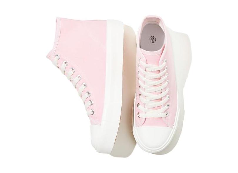 Uoidru Tênis de cano alto feminino de lona, lona, cano alto, feminino, casual, cadarço, rosa, 38
