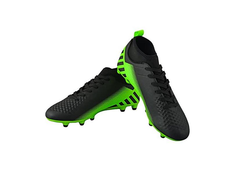 Vizari Chuteiras de futebol adulto Santos FG para jogos ao ar livre | Tênis de futebol masculino cano médio | Sola de TPU moldada com tachas redondas para estabilidade e máxima tração, Preto/Verde, 45