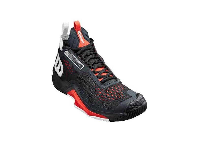 WILSON Tênis masculino Rush Pro Tour Mid, Preto/branco/vermelho papoula, 38