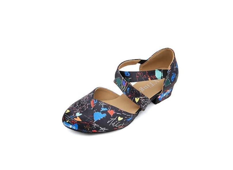 YYTing Tênis de dança de salão feminino Swing Latin (bico fechado, sola de camurça, fecho elástico) salto de 3,8 cm YT26, Padrão misto, 36