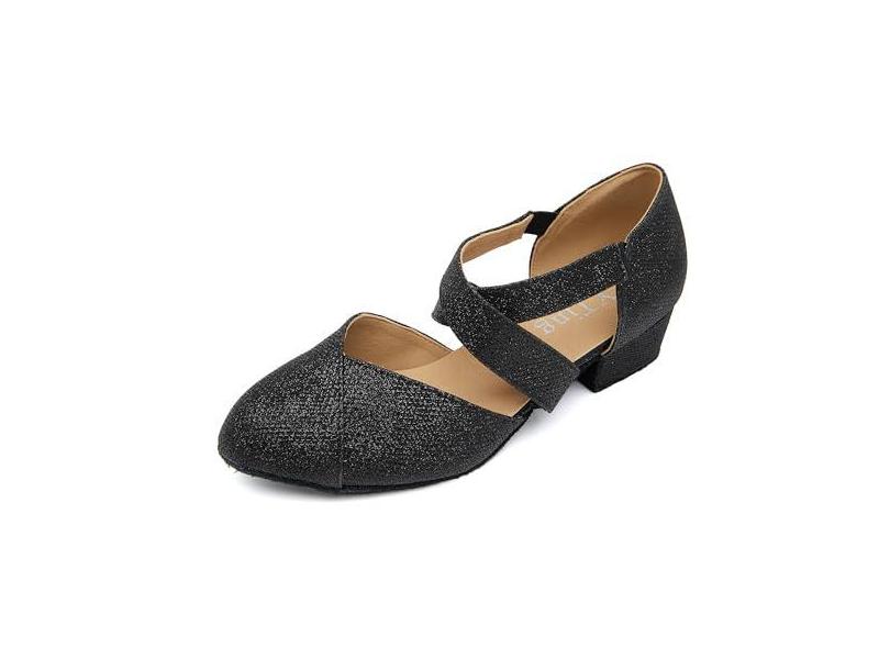 YYTing Tênis de dança de salão feminino Swing Latin (bico fechado, sola de camurça, fecho elástico) salto de 3,8 cm YT26, Preto brilhante, 36