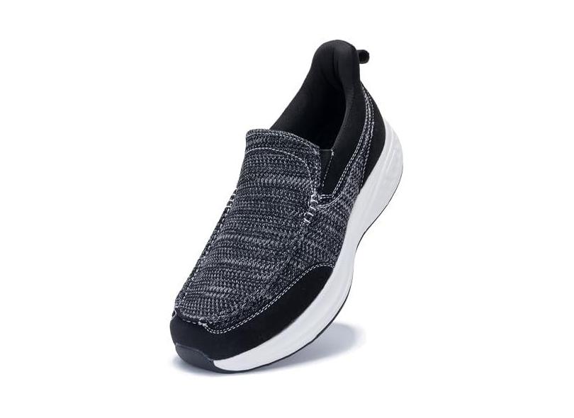 ZF ZEFUHER Tênis masculino sem cadarço, casual, confortável, sem usar as mãos, plataforma leve, lona, Preto, 41