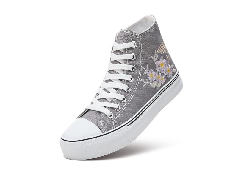 ZGR Tênis feminino de lona de cano alto, preto e branco, bordado de lona, tênis moderno casual, Bordado cinza, 35