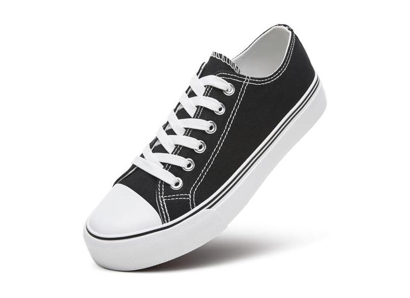 ZGR Tênis feminino de lona de cano baixo, tênis de lona com cadarço, tênis branco casual, Preto, 35