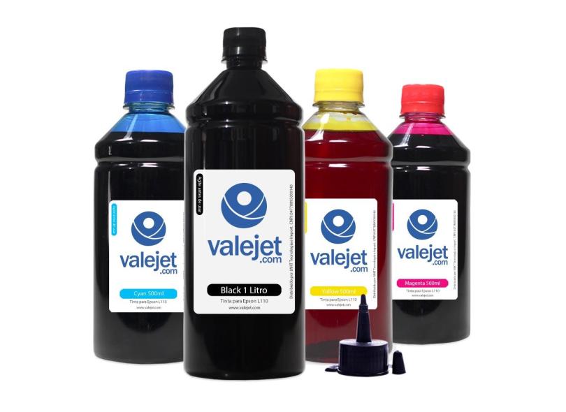 Compatível: Kit 4 Tintas L110 Para Epson Bulk Ink Black 1 Litro Coloridas 500ml