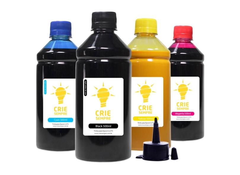 Compatível: Kit 4 Tintas Para Epson L375 Cmyk Pigmentada Crie Sempre 500ml