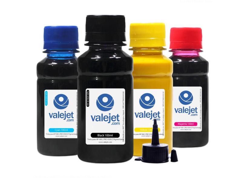 Compatível: Kit 4 Tintas Para Hp 980 | X555dn | X585f Cmyk Pigmentada 100ml