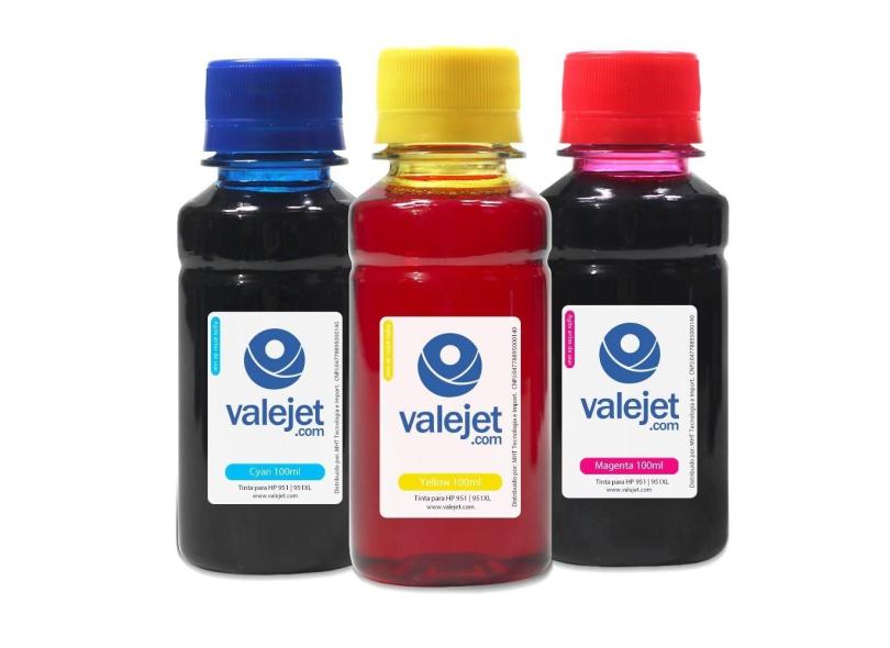 Kit 3 Tintas para HP 951 | 951XL Coloridas 100ml Corante Valejet
