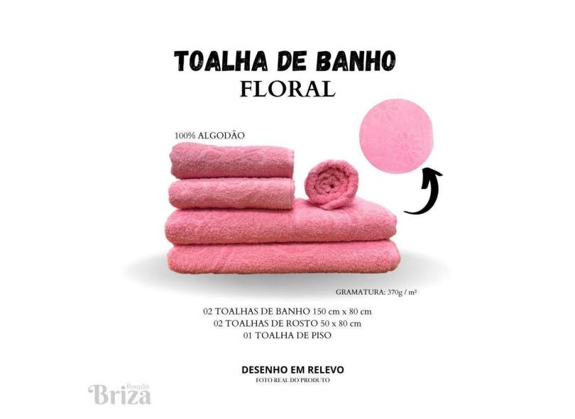 Jogo De Toalha De Banho E Rosto 5 Peças Briza - Floral Rosa