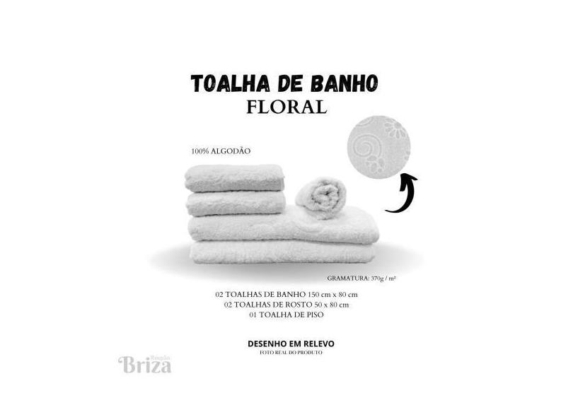 Jogo De Toalha De Banho e Rosto 5 Peças Gigante Briza Floral - Branca