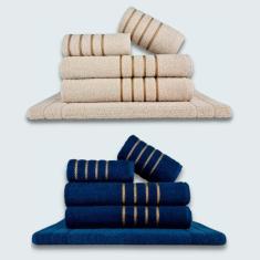 Jogo De Toalhas 10 Pçs Coleção Dubai 100% Algodão Bege+azul