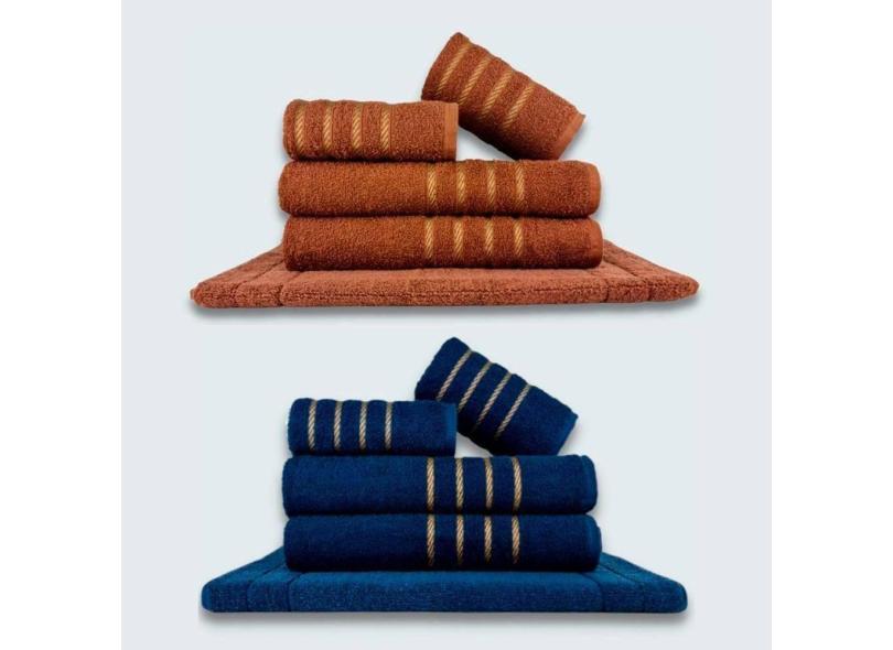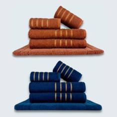Jogo De Toalhas 10 Pçs Coleção Dubai100% Algodão Marrom+azul