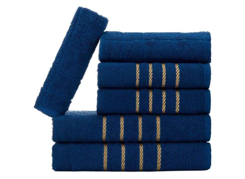 O menor preço encontrado no Brasil para Jogo De Toalhas 6 Pçs 2 Banho 2 Rosto 2 Piso Montreal 100% Algodão Azul Marinho atualmente é R$ 112,91.