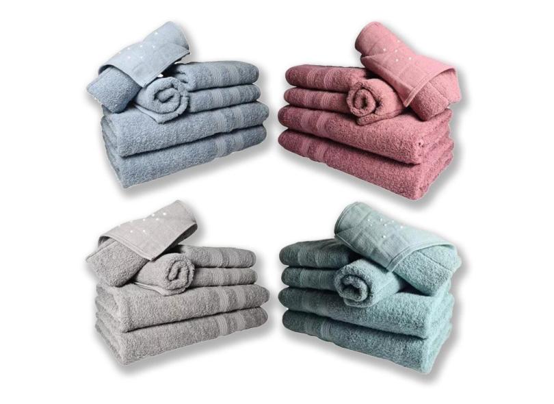 Jogo De Toalhas 8 Banhos 8 Rostos 8 Pisos Grande Grossa Az+re+cz+vd