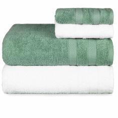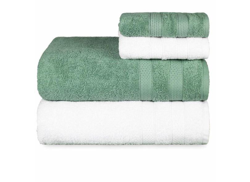 Jogo De Toalhas Fio Penteado Extra Macia 4 Peças - Comfort - Verde + Branco