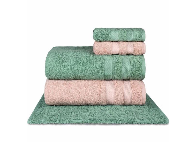 Jogo de Toalhas Fio Penteado Extra Macia 5 Peças - Comfort (Verde + Rosê)