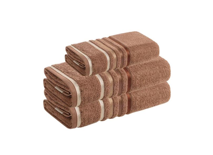 Jogo Toalhas de Banho 3 peças Lumina Unika Karsten Marrom Sienna Fio Penteado
