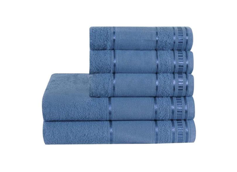 Toalha De Banho 5 Peças Premium Azul Jeans Dianneli