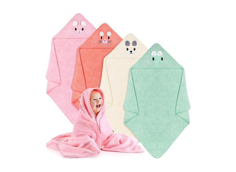 Toalha de banho para bebês Preboun Coral Fleece com capuz 80x80cm, 4 u