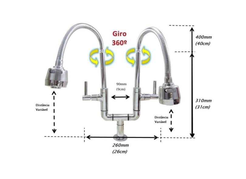 Torneira Bica Dupla Gourmet, Bancada, Pia, Mesa, Cozinha
