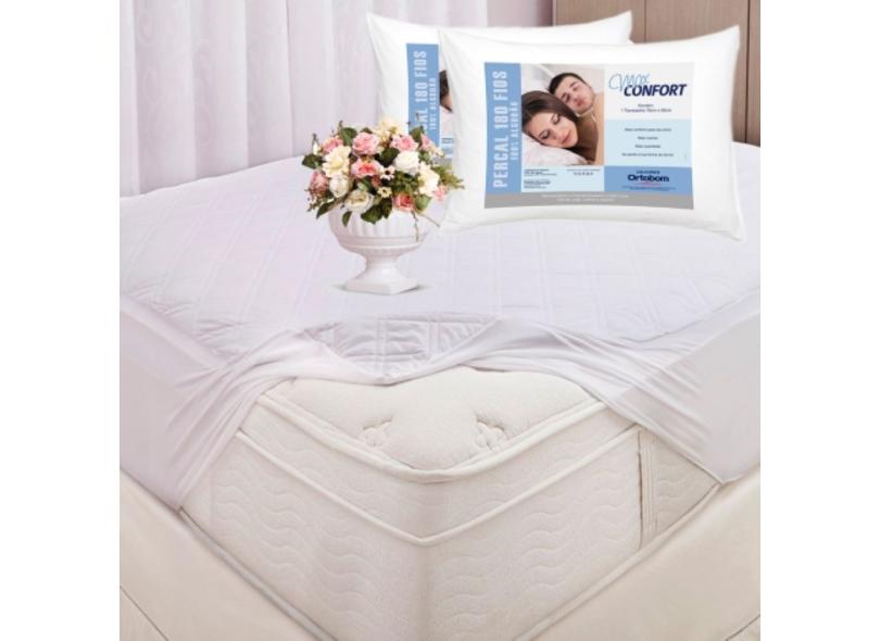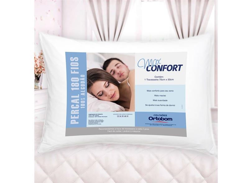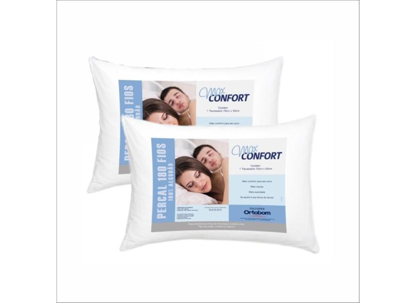Kit 2 Travesseiros Ortobom Max Confort Tecido Percal 180 Fios Fibra Siliconizada 70 x 50cm