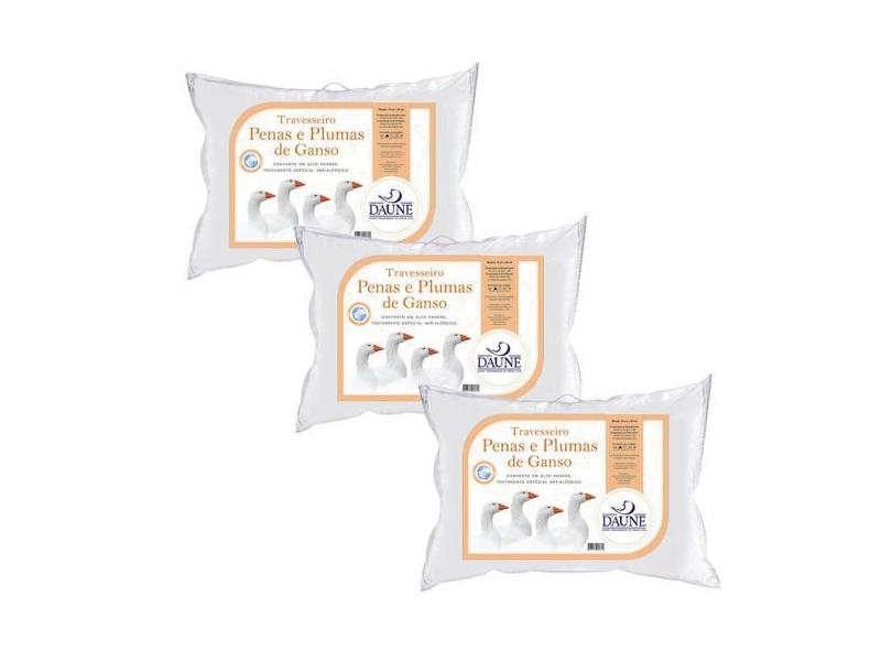 Kit 3 Travesseiros 70x50 80% Penas 20% Plumas de Ganso - Confortável -