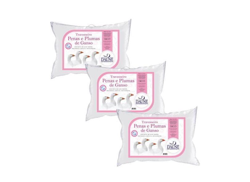 O menor preço encontrado no Brasil para Kit 3 Travesseiros 70x50 95% Penas 5% Plumas de Ganso - Daune Antialer atualmente é R$ 284,99.