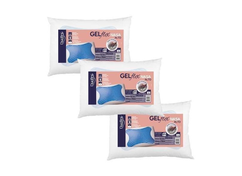 Kit 3 Travesseiros Gel Nasa Alto - 17cm - Duoflex