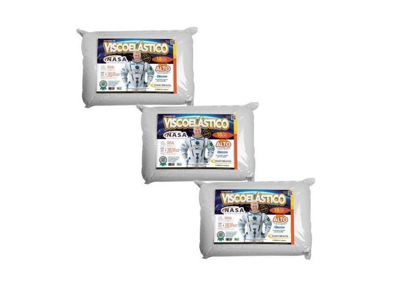 Kit 3 Travesseiros Viscoelástico 18cm Extra Alto - MarcByan