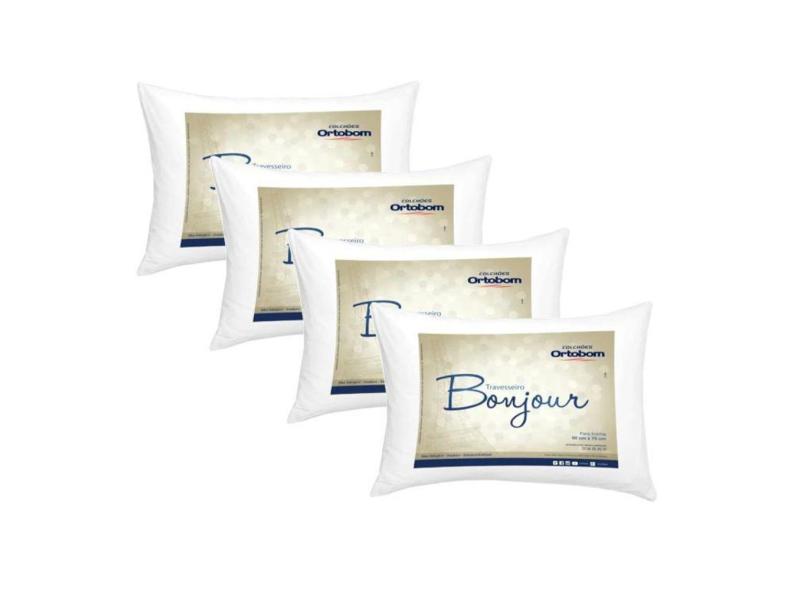 Kit 4 Travesseiros Descanso Bonjour Algodão Branco Familia