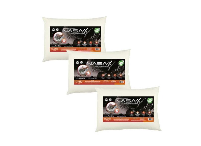 Kit de 3 Travesseiros Nasa X Baixo - Macio - Duoflex, NS3209