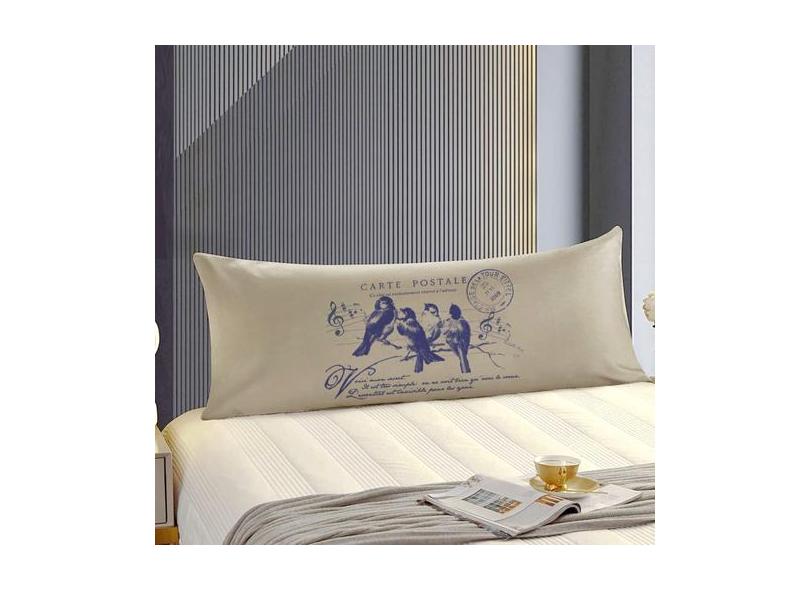 Travesseiro De Corpo Body Pillow 40x130cm Suede Bege Pássaros Azul - F