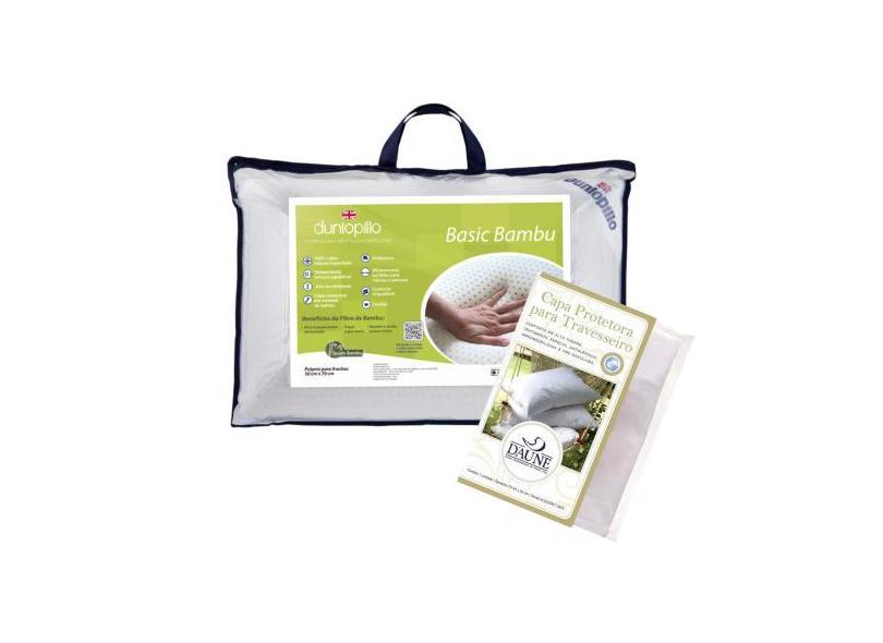 Travesseiro Dunlopillo Linha Basic Bambu 15cm + Capa Impermeável
