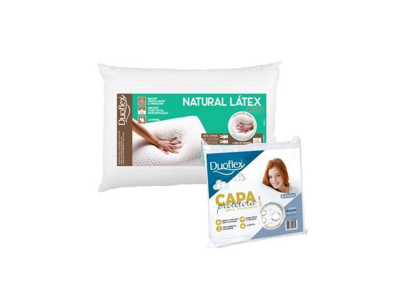 Travesseiro Látex Natural - 10cm + Capa 100% algodão Impermeável - Duo