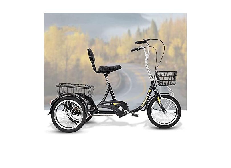 Triciclo adulto de 40,6 cm para atividades ao ar livre, bicicleta de três rodas, pedalada com cesta de compras, bicicleta para idosos, mulheres, homens, triciclos, recreação, compras, piquenique