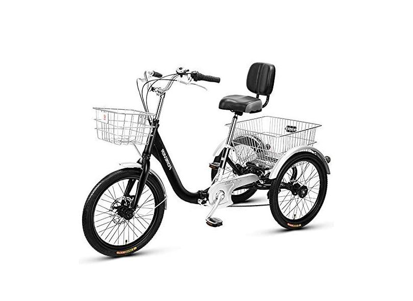 Triciclo dobrável para atividades ao ar livre, bicicleta de três rodas de 50,8 cm, com cesta de compras, ciclismo, pedalada para idosos, mulheres, homens, triciclos, recreação, compras, piquenique,