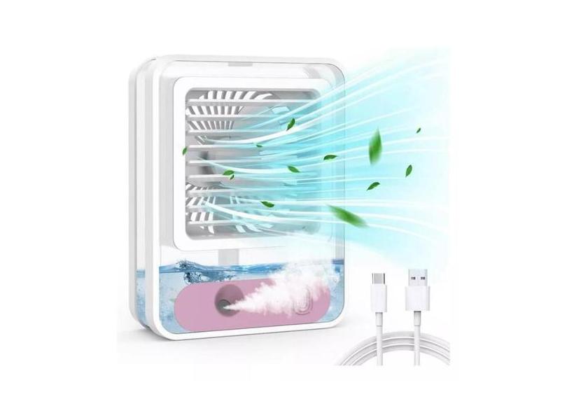Mini Ventilador Portátil e Umidificador de Ar com Led 3 Velocidades Re