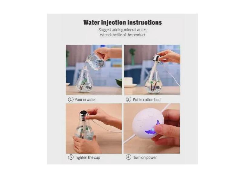 Umidificador De Ar Usb Formato Lâmpada Led Luz Colorida