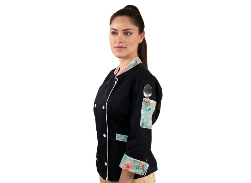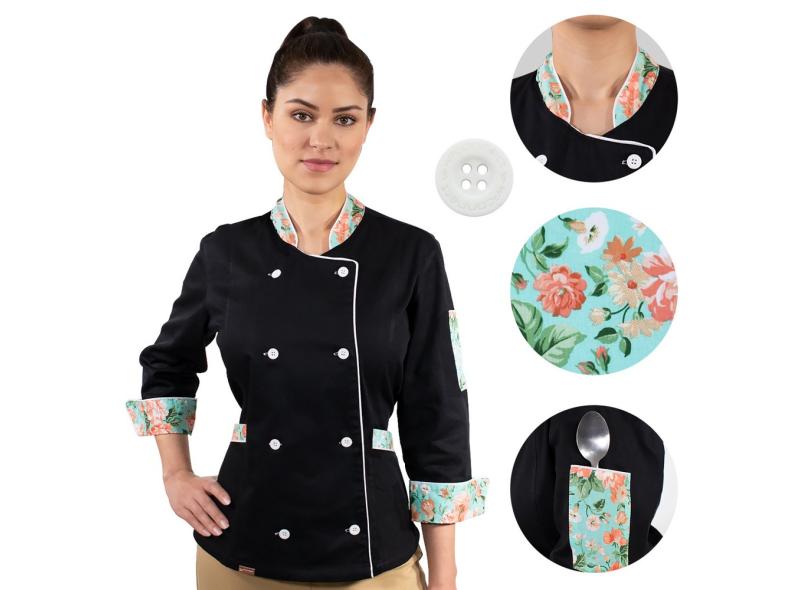 Dólmã Chef de Cozinha Feminina Estampada Floral 100% Algodão