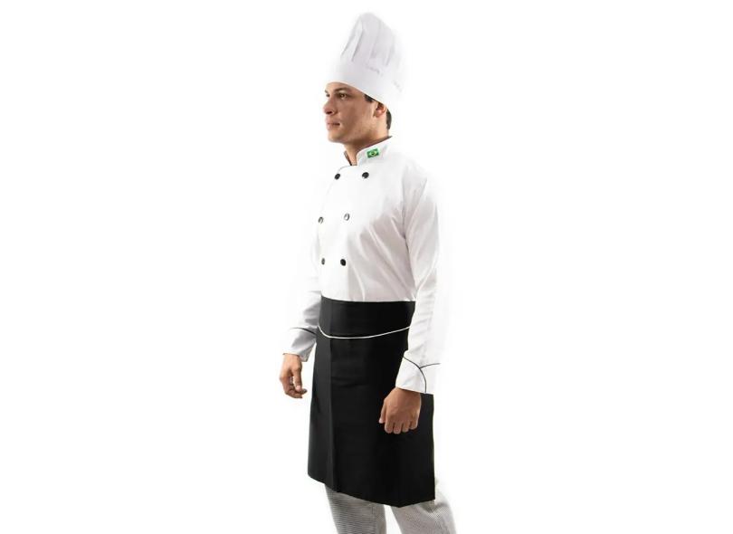 Kit Dolmã Chapéu Avental Chef Cozinha Masculino